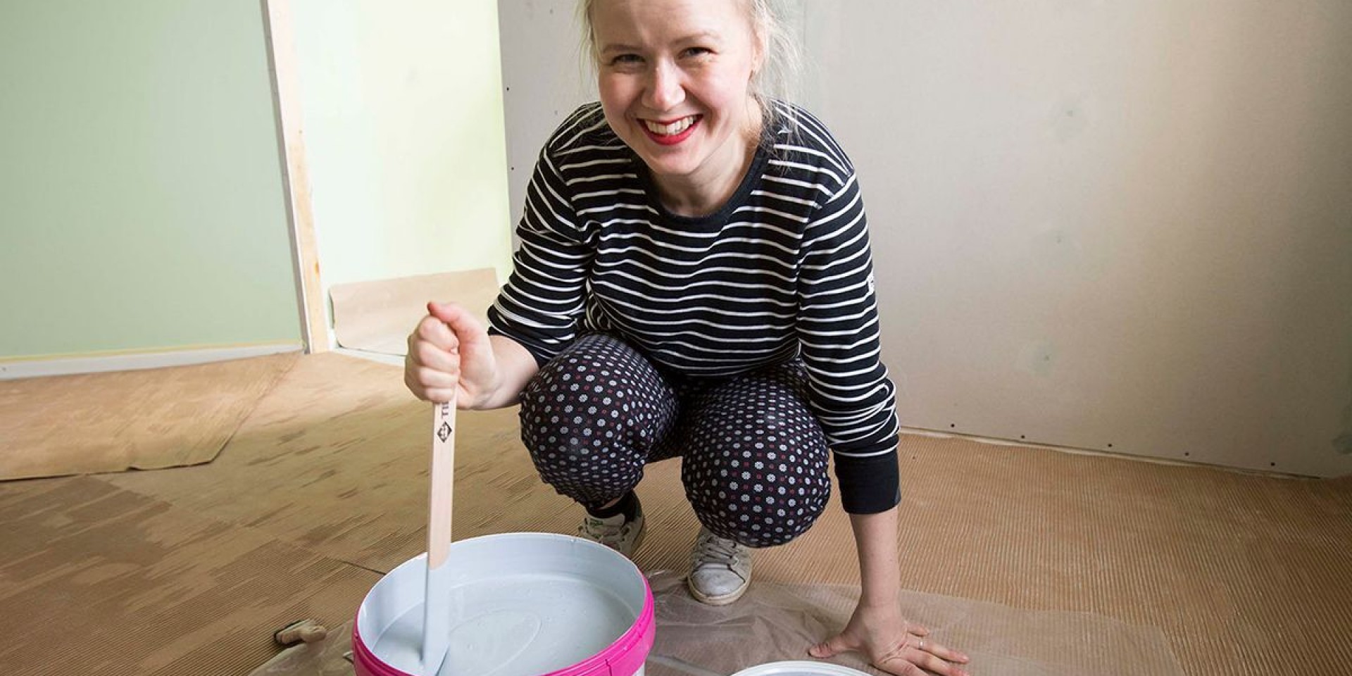 Begin by wiping the surface of the wall clean. If the surface requires a deeper clean, use Tikkurila Maalipesu cleaning agent to remove unwanted dirt and leave to dry.