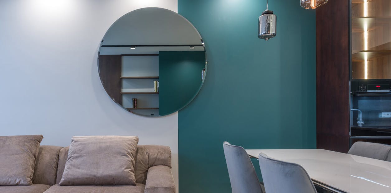 If you prefer more contemporary living room colour schemes, don't be afraid of using bold colour contrasts and two-tone designs. Combining green with an off-white hue or muted blue paint colour is an easy way to transform a tired living room into a space worthy of any interior design magazine.