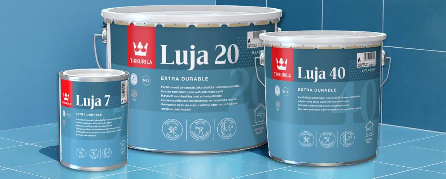 Luja can be applied to interior concrete, plaster, screed, brick, chipboard, drywall, and fiberboard surfaces. It is suitable for both new and previously painted surfaces. When Multistop primer is used as a base coat, it is also ideal for bathroom panel ceilings.