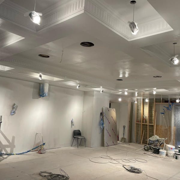 To prime the fresh plaster on walls and ceilings, they used Nova 2 trade emulsion. This high-opacity, flat matt paint is a perfect choice for plaster as it helps prevent the surface from soaking up too much paint, maximising efficiency and creating a solid foundation for the topcoat.