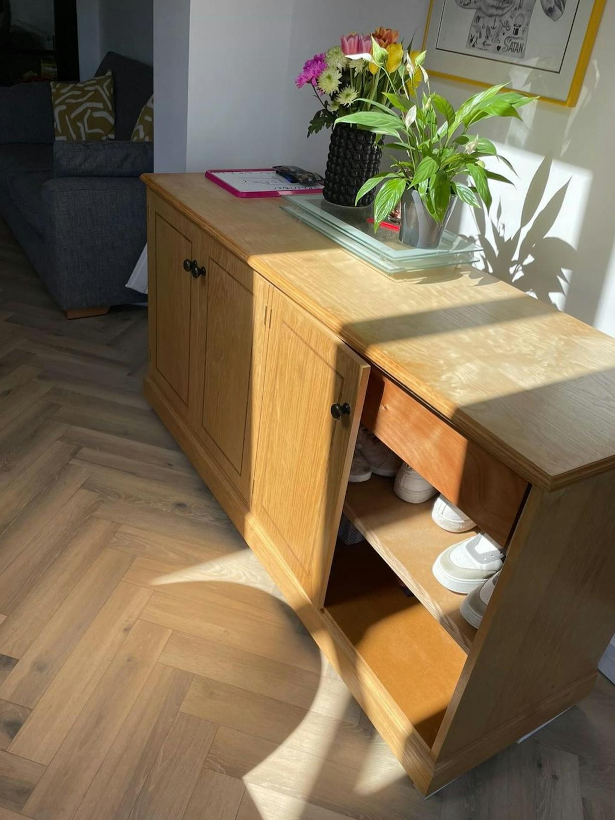 The sideboard was then sanded down twice, ensuring a smooth and even surface for the subsequent coats.
