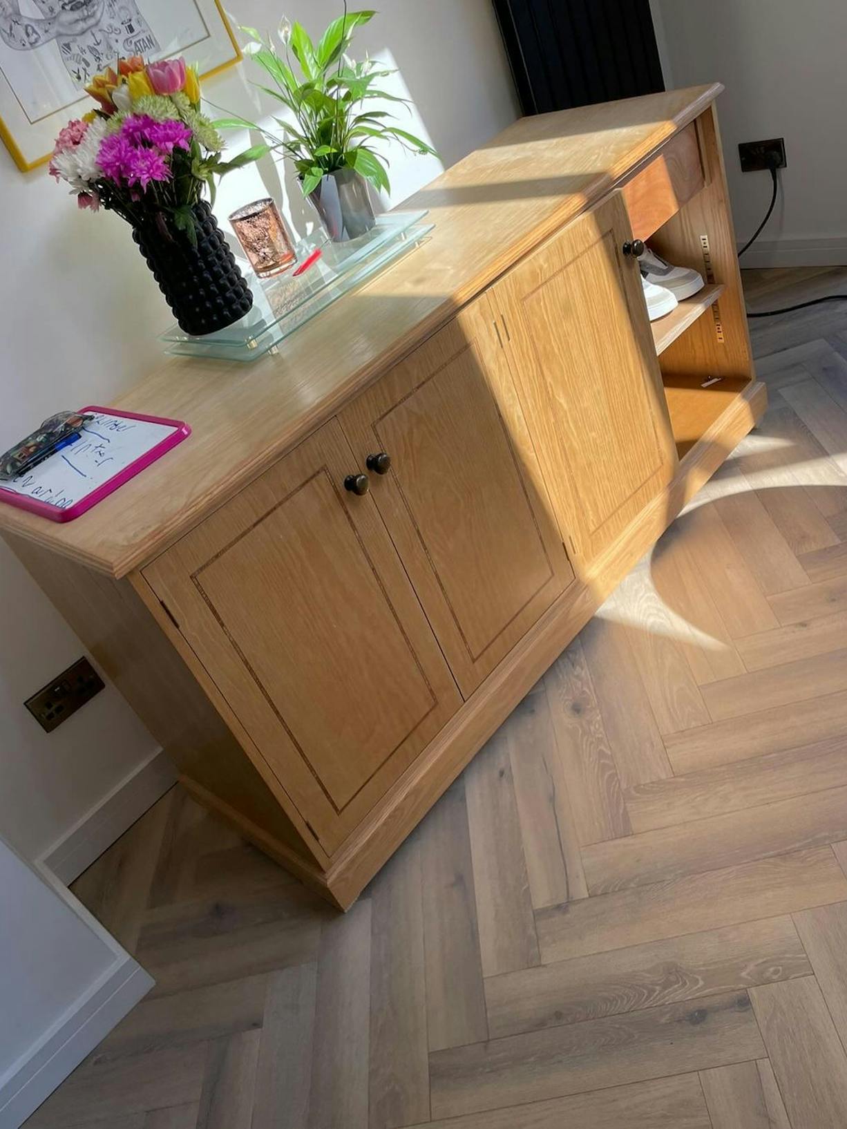RJA Painting & Decorating was tasked with restoring a wooden sideboard to its former glory. The sideboard had suffered from wear and tear, with a dull finish and visible imperfections. The client's desire for a luxurious, metallic, pearlescent finish presented a unique project.